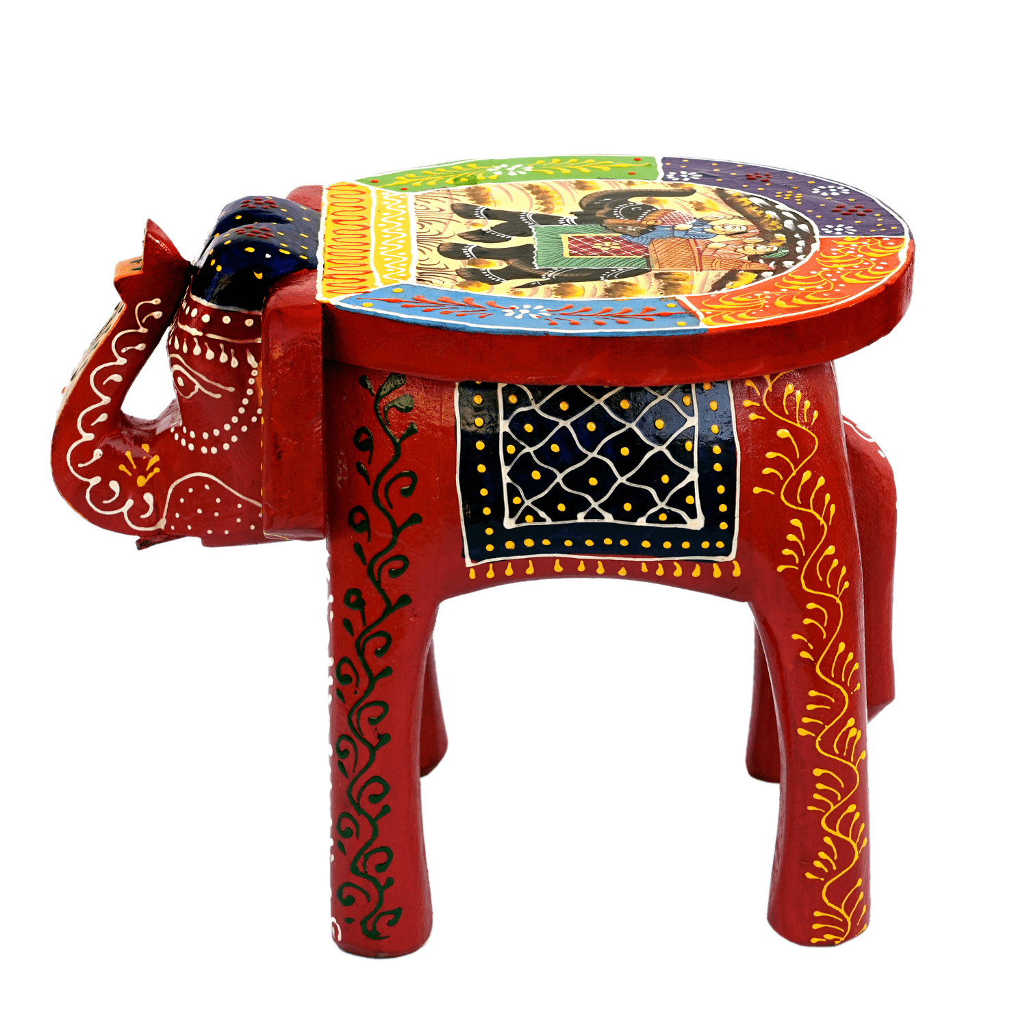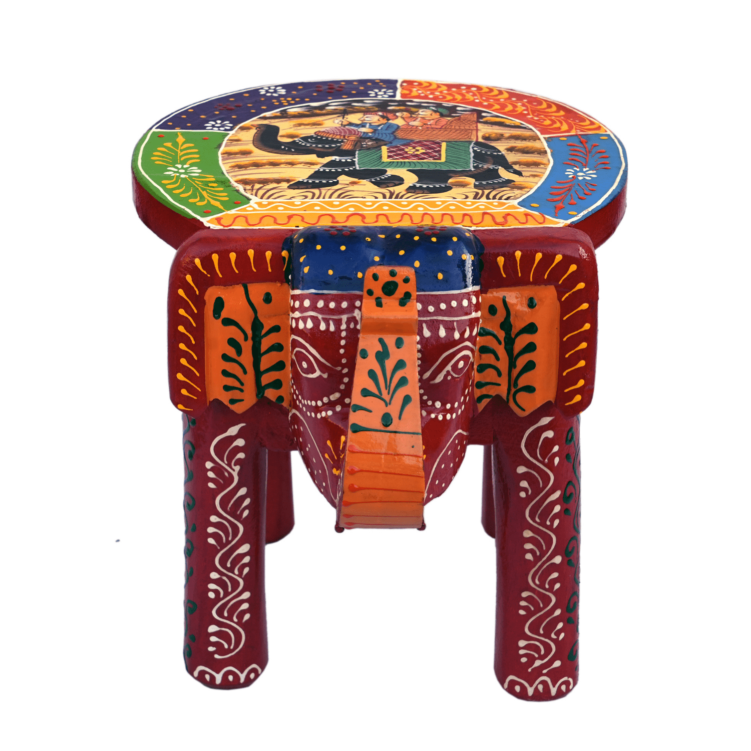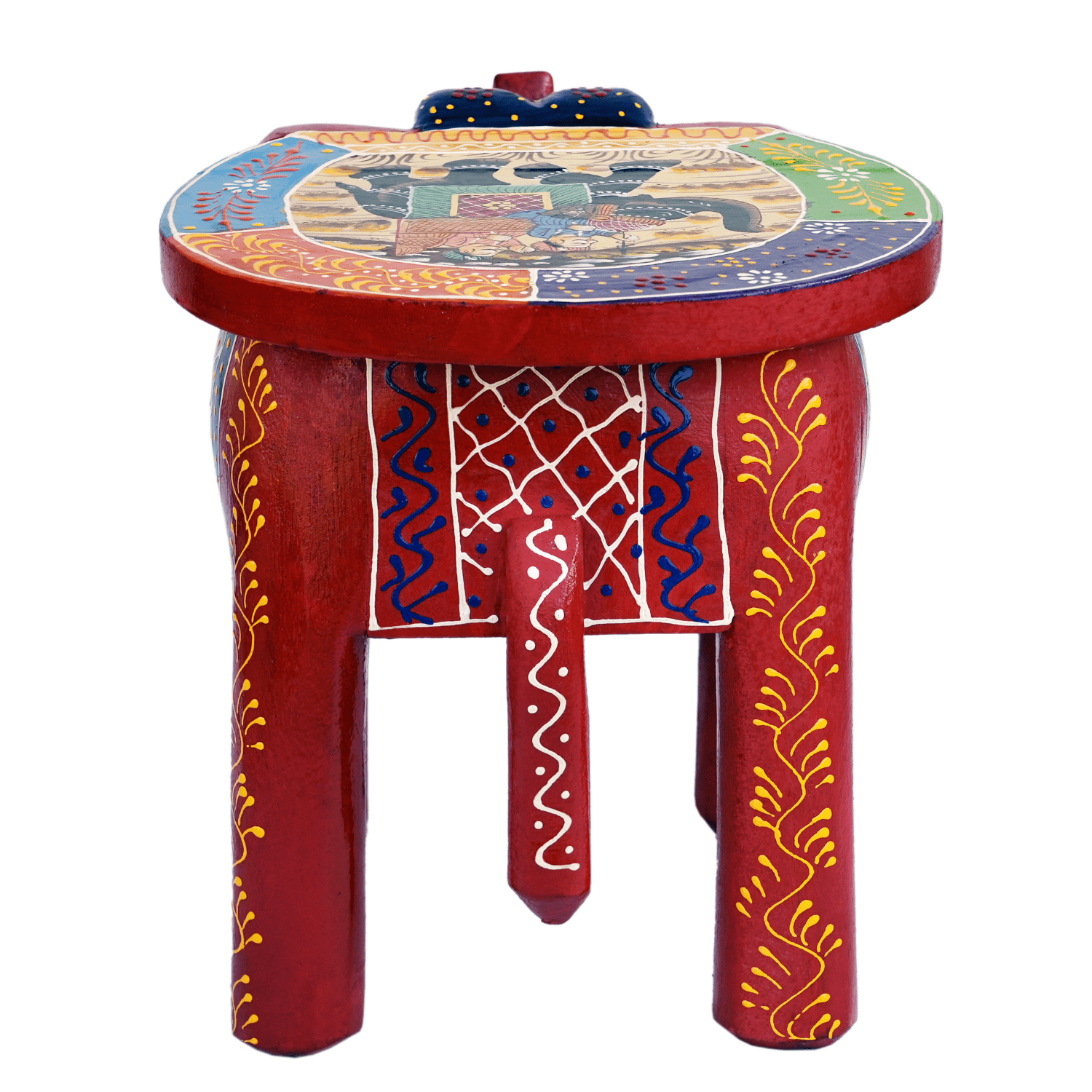 Bring home timeless Indian craftsmanship with the Hastam Handcrafted Wooden Elephant Stool, a stunning blend of utility, art, and culture. Hand-carved from durable wood and intricately hand-painted in traditional folk art patterns, this elephant-shaped stool reflects the rich heritage of Indian handicrafts.